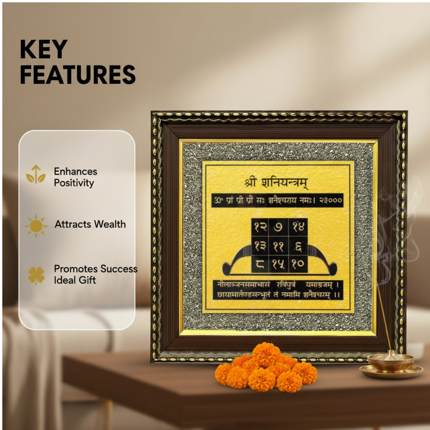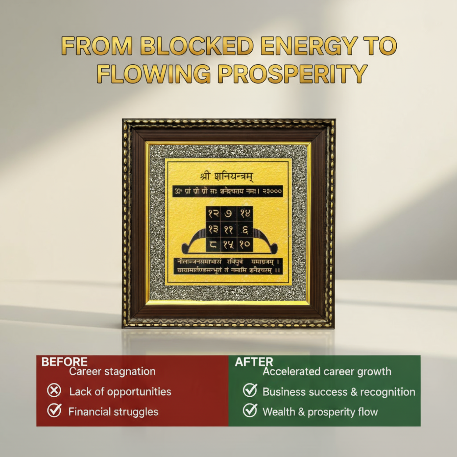 Aligned with Vastu Shastra and Jyotish (Vedic Astrology), this frame balances Saturn’s stern energy, turning trials into triumphs.